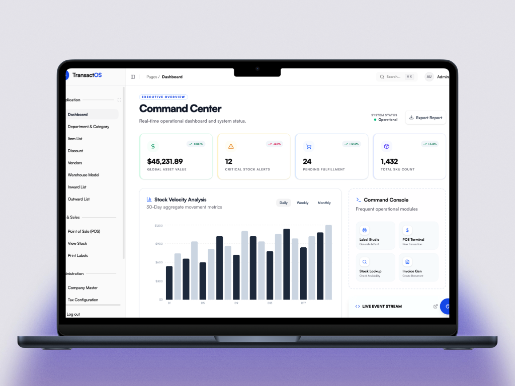 Unified B2B Operations Dashboard designed to streamline complex business transactions and operational workflows.