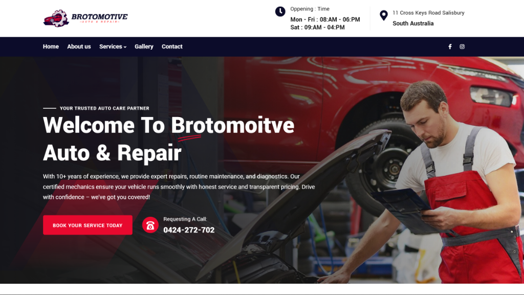 A professional, responsive website for Brotomotive — connecting vehicle owners with reliable auto repair and maintenance services.