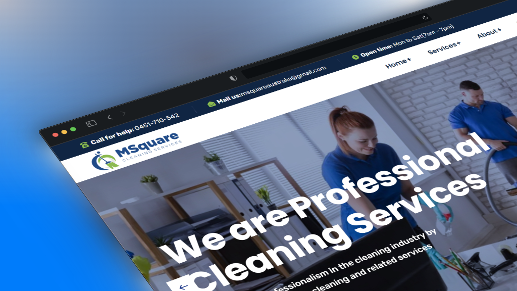 A comprehensive brand identity and website design for MSquare Cleaning Services — sparkle in every detail.